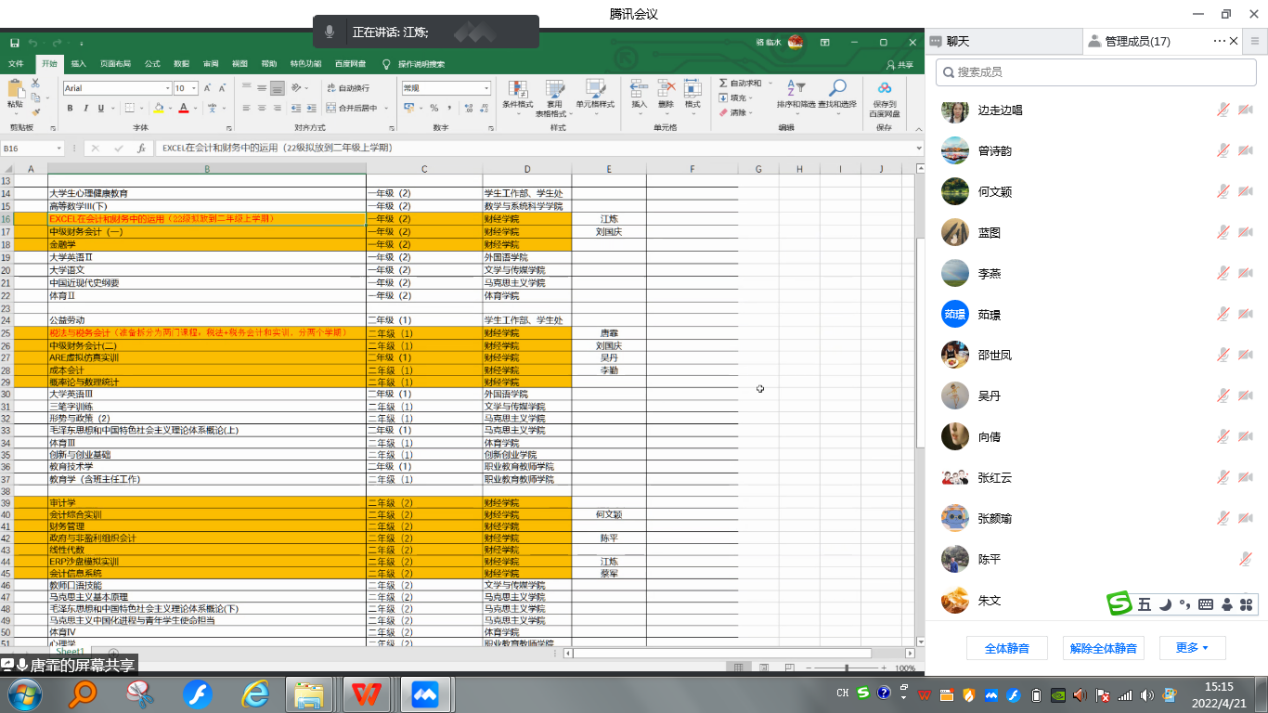 2022年4月21日,会计系召开了人才培养方案研讨会,会议采用腾讯会议形式,主要议题包括会计学专业与财务会计教育专业人才培养方案调整征求意见以及教师课程承担安排,会计系全体老师参加。