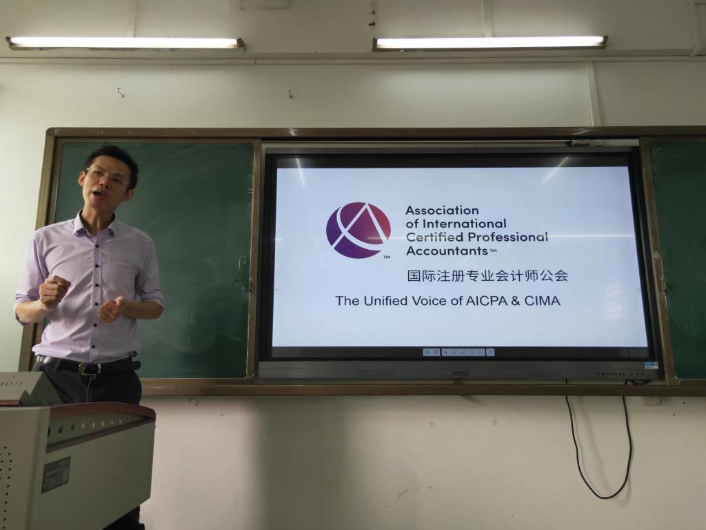 为了让会计专硕同学们熟悉CIMA相关信息,伟德betvlctor国际官网于2019年10月12日上午邀请CGMA(合并后的协会简称)广州区负责人Frank为同学们介绍CGMA的发展现状,免考通道,课程体系,培训支持,考试大纲等。同学们对此CIMA资质充满兴趣,咨询了注册报名,考试时间,费用,教材等信息,Frank一一回答了同学们的提问,并期望能同学们与协会深度交流。