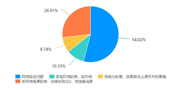 从上课质量的影响因素统计结果看,网络延迟是最主要的影响因素,延迟与卡顿使课堂不能达到在校上课的效果,网络授课的同时弹出QQ群与微信群消息也影响了同学们上课的专注度,在家学习的环境影响使得部分自制力较差的同学无法完全投入学习。