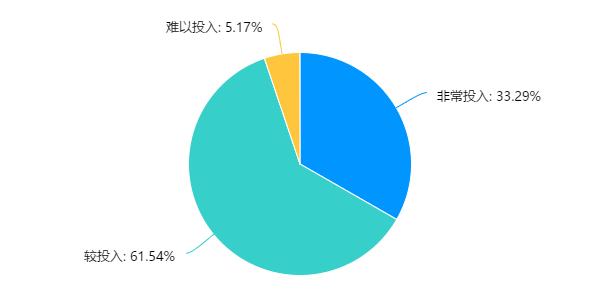 本学期开学第一周,全部课程有序开展,部分实训实操类课程需待返校后才能恢复正常。但调查,我们从结果可以看出:关于员工上网课的投入程度,有占33.29%的同学是能够做到在上网课期间非常投入的,61.54%左右的同学比较投入,但也存在小部分同学(占5.17%)表示难以集中精力投入到网课学习中去。因此,为进一步加强员工们对于学习投入的积极性,团学通过举办相关学习案例分享活动,鼓励员工们记录和分享自己的学习过程、方法,提高同学们的学习积极性和投入性。